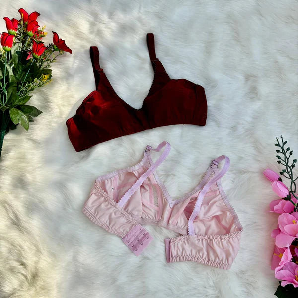 Experience comfort and breathability with this new pack of four high-quality cotton bras. Designed without padding, these bras offer a natural fit while providing gentle support throughout the day. Crafted from soft, breathable cotton fabric, they are ideal for everyday wear, ensuring skin-friendly comfort and durability. Perfect for those seeking simplicity and quality in their lingerie collection.